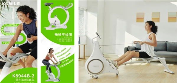 KSMILE為新世代年輕人打造的居家個(gè)性健身品牌,將健身與娛樂、智能科學(xué)、自我管理融為一體,為家用健身行業(yè)注入新的活力。本屆體博會(huì)KSMILE展示了智能科技與顏值兼?zhèn)涞呐懿綑C(jī)、健身車、劃船機(jī)等產(chǎn)品,讓現(xiàn)場(chǎng)觀眾親身體驗(yàn)康樂佳為家庭用戶提供的高品質(zhì)健身器材??梢灾攸c(diǎn)關(guān)注K8944B-2圓形動(dòng)感單車、K8328BSW自發(fā)電立式車、K8750TP-1等產(chǎn)品。