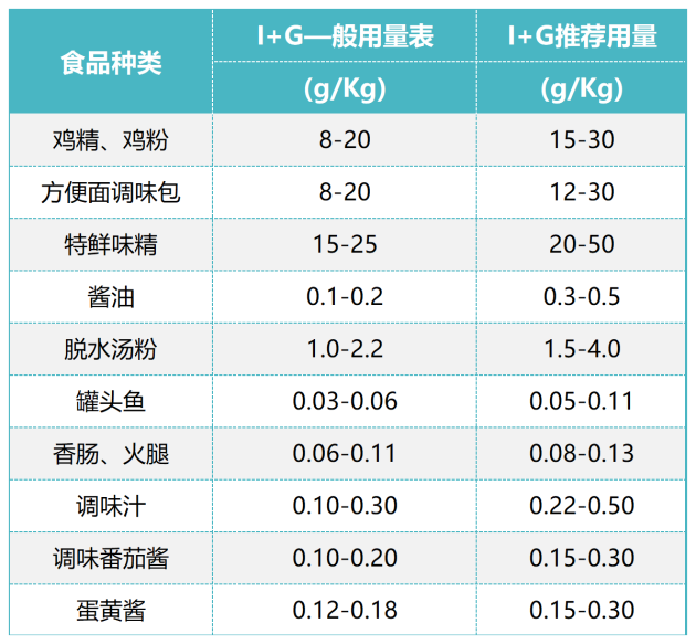 味精和I+G是互為依賴的增鮮劑,兩者合理并用時(shí),可使菜肴鮮味躍增,達(dá)到味精無法達(dá)到的鮮味,我們稱之為“鮮味”的相乘效果。使用時(shí),I+G添加量約為味精的2~5%,其增鮮效果可以提高3~6倍左右,而且對(duì)產(chǎn)品品質(zhì)有很大提升,使味覺明顯改善,甜、酸、苦、辣、鮮、香和咸味等更加濃郁而協(xié)調(diào),更接近天然食品的味道。
