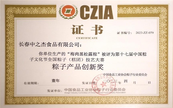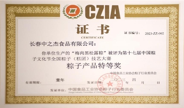 2023年4月19日,中之杰再次驚艷亮相中國粽子文化節(jié),一舉斬獲三項全國大獎。中之杰的梅肉黑松露粽作為創(chuàng)新產(chǎn)品,從原料、工藝、口感、顏值等各個方面都受到行業(yè)專家推崇,同時斬獲全國(糕團)技藝大賽雙冠王——大賽最高獎項“粽子產(chǎn)品特等獎”和“粽子產(chǎn)品創(chuàng)新獎”,中之杰海鹽芝士炸不爆元宵榮獲全國(糕團)技藝大賽最高獎項“糕團產(chǎn)品特等獎”。