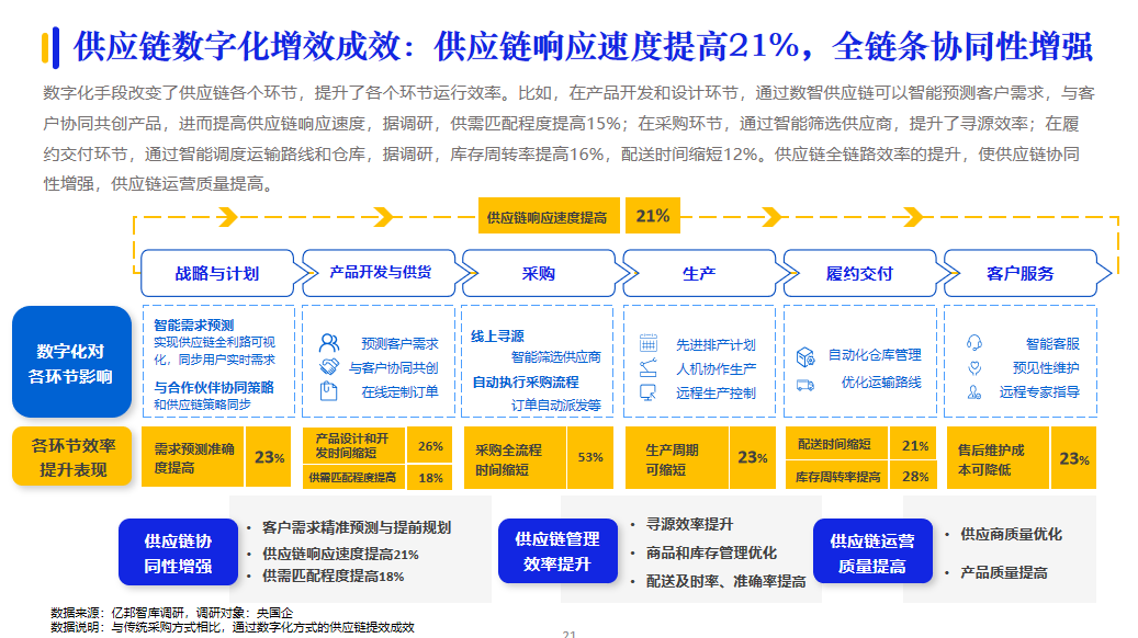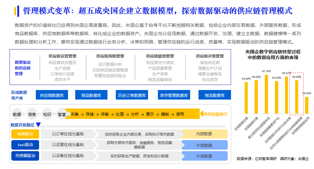 7月12日,《2023數字化采購發(fā)展報告》(下文稱《報告》)在第四屆國有企業(yè)數智化采購與智慧供應鏈高峰論壇上重磅發(fā)布。《報告》由億邦智庫聯合中國物流與采購聯合會公共采購分會共同發(fā)布。今年《報告》以“擁抱數字供應鏈”為年度主題,通過深入調研100余家企業(yè),與多方專家和企業(yè)深度探討,闡述我國企業(yè)正在“以采購數字化為切入點,帶動供應鏈數字化建設”。解析“可預測的數智供應鏈”、“全環(huán)節(jié)綠色低碳供應鏈”、“多方共建共享的生態(tài)化供應鏈”的數字供應鏈新趨勢。并梳理多家知名供應商和技術服務商典型案例,闡述數字供應鏈最新解決方案。
