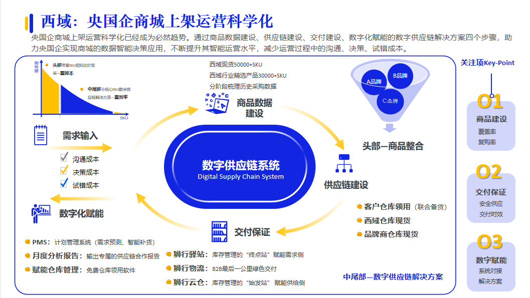 對于供應商來說,為用戶提供供應鏈服務是基礎能力,但供應鏈的“精細化”運營才是考驗供應商的核心能力。例如:西域依托平臺積累和沉淀大量的用戶、商品和交易數據,提供精細化的數據、商品、庫存和交付的運營服務,進行深度的數據治理,幫助用戶精選優(yōu)質商品和智能備貨。
