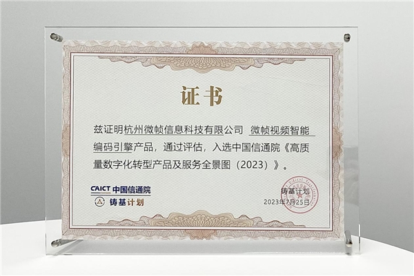 7月27日,由中國(guó)信通院主辦的“2023數(shù)字生態(tài)發(fā)展大會(huì)”暨中國(guó)信通院“鑄基計(jì)劃”年中會(huì)議在北京召開(kāi)。本次大會(huì)全面總結(jié)了“鑄基計(jì)劃”上半年度工作成果,并重磅發(fā)布了《高質(zhì)量數(shù)字化轉(zhuǎn)型產(chǎn)品及服務(wù)全景圖(2023)》。微幀科技作為全球領(lǐng)先的視頻編碼及AI解決方案提供商受邀出席會(huì)議,【微幀視頻智能編碼引擎】以行業(yè)領(lǐng)先的編碼性能、不斷突破技術(shù)極限的自研能力,實(shí)力入選全景圖。