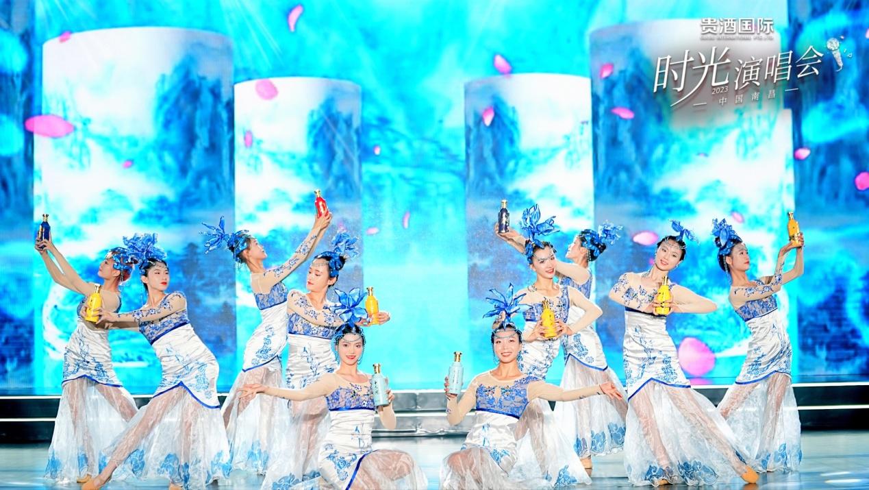 舞臺(tái)上,琥珀歲月,醉心時(shí)光,音樂(lè)穿越時(shí)空,喚起記憶的波瀾。演唱會(huì)以舞蹈《青花瓷》拉開(kāi)序幕,舞者手中的青花瓷瓶,配合東方神韻的輕柔舞姿,這一切仿佛傾訴著貴酒國(guó)際對(duì)傳統(tǒng)文化的傳承與熱愛(ài),將音樂(lè)與舞蹈的融合演繹得淋漓盡致。毛一涵、劉航、莫斯?jié)M、王強(qiáng)等依次登臺(tái),用歌聲跨越時(shí)光,共同體驗(yàn)音樂(lè)與時(shí)光交織的魅力。一場(chǎng)橫跨味覺(jué)與聽(tīng)覺(jué)的盛會(huì),應(yīng)和滕王閣浩瀚雄姿?!队成郊t》、《紅旗飄飄》、《青藏高原》、《秋天不回來(lái)》等經(jīng)典旋律,讓現(xiàn)場(chǎng)觀眾感受到了濃郁的中國(guó)紅色文化與江西文化的底蘊(yùn)。觀眾們仿佛穿越時(shí)光,重溫那些難忘的年華,共同感懷著芳華歲月的美好回憶。