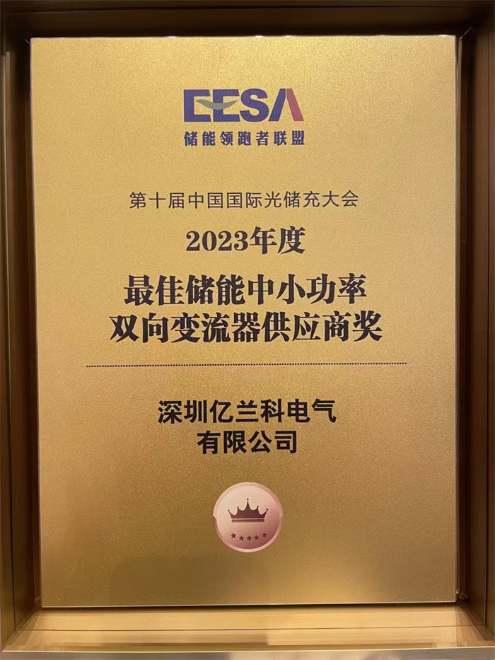 實力領(lǐng)航 億蘭科獲2023年度最佳儲能中小功率雙向變流器供應(yīng)商獎