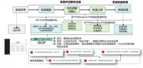 NSFOCUS ISOP的SOAR能力區(qū)別于其他產(chǎn)品的關(guān)鍵能力是系統(tǒng)架構(gòu)開放化和部署靈活化、安全能力編排生態(tài)化、安全流程高度定制化、安全分析響應(yīng)智能化、案例知識實戰(zhàn)化。最為關(guān)鍵的是AISecOps創(chuàng)新技術(shù)能力已在多個行業(yè)客戶處進(jìn)行了深度實踐使用。通過AI輔助的智能化研判覆蓋率高達(dá)96.7%,大幅提升了運營效率;通過AI技術(shù)的運用,實現(xiàn)了海量告警的降噪和自動化研判分析;通過智能分診推薦能力,實現(xiàn)場景和模型的升級,與SOAR組合為客戶提供更智能的交互運營手段。以事件響應(yīng)為必備應(yīng)用場景,利用XDR技術(shù)和綠盟豐富的威脅情報數(shù)據(jù),助力安全運營人員高效開展各項安全運營工作,提升安全運營的實戰(zhàn)化水平。