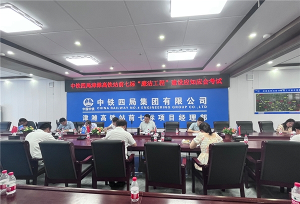 為進(jìn)一步增強(qiáng)項(xiàng)目全員廉潔自律意識(shí),積極響應(yīng)津?yàn)H高鐵“廉潔工程”建設(shè)工作全面開展,7月24日,中鐵四局一公司津?yàn)H高鐵站前七標(biāo)項(xiàng)目黨總支組織項(xiàng)目經(jīng)理部全體員工開展“廉潔工程”建設(shè)應(yīng)知應(yīng)會(huì)知識(shí)測(cè)試活動(dòng),以考促學(xué),以學(xué)促干,提升項(xiàng)目全體員工“廉潔工程”建設(shè)工作的主動(dòng)性、積極性。