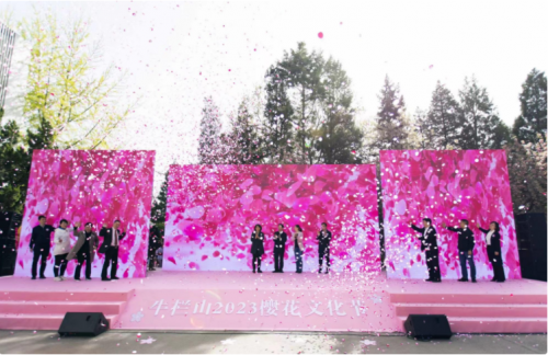 隨著領導嘉賓屏幕上印上掌紋,在高潮迭起的音樂和花瓣雨中,牛欄山2023櫻花文化節(jié)暨牛欄山鎮(zhèn)2023全民閱讀季、文明之約活動正式啟動。