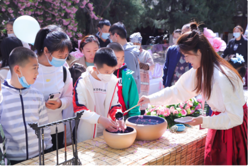 除了舞臺演出,活動園區(qū)內更是精彩紛呈。會場入口處主題為“尋香畫卯”,設立簽到區(qū)及氛圍合影區(qū),將中華傳統(tǒng)禮儀及文化儀式融入活動環(huán)節(jié)。兩側的櫻花迎賓路打造出主形象“2023年牛欄山櫻花文化節(jié)”,賞櫻路線一直到圖書館作為終點對應活動主題。極具特色的是,在互動活動區(qū)通過“賞琴棋,茶詩作裳舞;簽石諾,郵工飛書畫”中華文化符號,打造了“華裳九州”“弦歌不輟”“落子無悔”“對花啜茶”“中華詩詞”“翰墨書香”“羅袖動香”“櫻之書韻”“尋香畫卯”“有口皆碑”“文明之約”“有聲郵驛”“櫻情手作”“風語非遺”“書意自來”“妙筆生花”等十六個沉浸式場景環(huán)節(jié)設置,傳遞中華文化之美,表達居民對生活之美的美好追求。