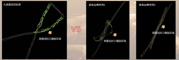 “三股螺旋”結(jié)構(gòu)被稱為“房子的屋梁”,對(duì)膠原蛋白的生物活性表達(dá)至關(guān)重要。而在業(yè)內(nèi),真正實(shí)現(xiàn)三股螺旋結(jié)構(gòu)的膠原蛋白原料寥寥無幾。