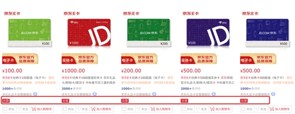 除此之外,還需要特別注意,京東E卡分為記名卡和不記名卡兩種,其中記名卡的最大面值是5000元,而不記名卡的最大面值是1000元。如果您買到或收到的卡片面值超出了這個(gè)限額,那么就一定是山寨的E卡。