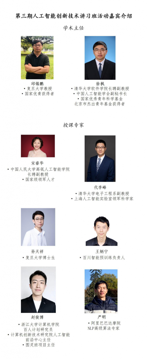 本期人工智能創(chuàng)新技術(shù)講習(xí)班將采用線(xiàn)下開(kāi)班,線(xiàn)上直播互動(dòng)同步進(jìn)行,關(guān)注“中國(guó)人工智能學(xué)會(huì)”公眾號(hào)可獲取更多報(bào)名信息,免費(fèi)參加線(xiàn)下講習(xí)班。