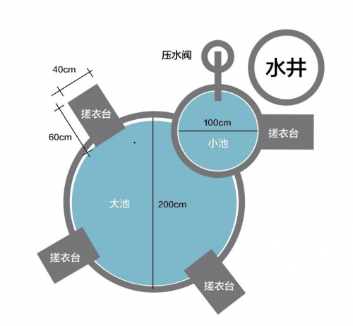 這個由專業(yè)人員設計的洗衣池使用的是旁邊一口老井的清潔水源,冬暖夏涼。由于設計巧妙,水流還可以在洗衣過程中多次利用。同時,四個帶有石制搓板的洗衣位均勻分布在洗衣池的周圍,充分照顧了村民們的社交需求,一邊洗衣服一邊聊天輕松愜意。