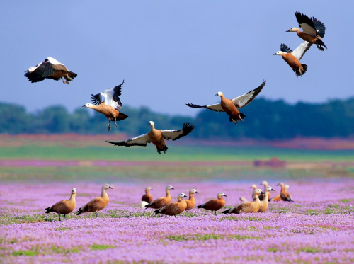 鄱陽湖過冬的赤麻鴨(攝影/楊帆,都昌縣候鳥自然保護區(qū)管理局提供)