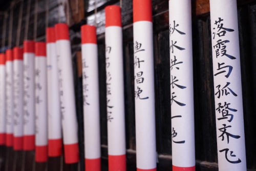 在這個書屋中,項目團隊別出心裁地規(guī)劃了一個叫“漢字與鳥”的板塊,包含了從甲骨文到現(xiàn)代所有與鳥相關的漢字。緊鄰這個板塊的墻上是一整排純手工制作的傳統(tǒng)卷軸,里面寫滿了與鳥相關的千古名句。位于大廳正中央的是一幅巨型馬影湖手繪地圖,上面標注著當?shù)刂饕暮蝤B種類,供參觀者學習。