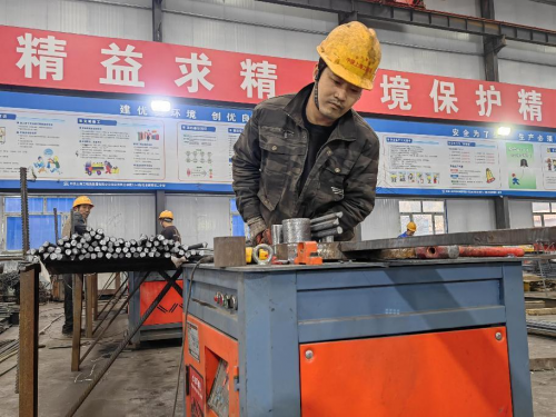 在1#鋼筋集中加工區(qū)內(nèi),一名來(lái)自云南保山市的鋼筋工李明正在進(jìn)行鋼筋彎曲作業(yè),他說(shuō)道:“我來(lái)沈白高鐵工地已經(jīng)有兩年了,每個(gè)節(jié)假日我都沒有回家,和工友們一起堅(jiān)守在崗位,加班加點(diǎn)干,保證現(xiàn)場(chǎng)鋼筋半成品足夠用,不耽誤現(xiàn)場(chǎng)施工進(jìn)度,家中有一個(gè)女兒,每當(dāng)想她的時(shí)候,用視頻聊聊天。”