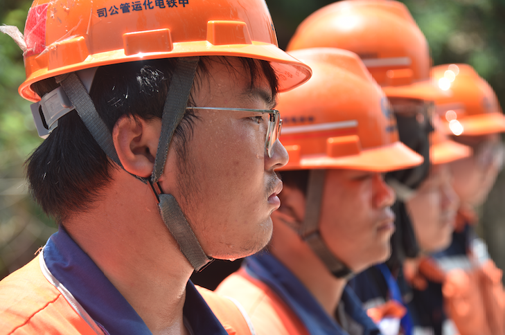 11點(diǎn)55分,封鎖命令一下,劉冉一馬當(dāng)先帶著大家沖到了線路上。由于鐵路線兩邊幾乎沒有任何遮陽的物體,經(jīng)過一上午的暴曬,鐵路線上的溫度已經(jīng)高達(dá)49.8℃,而現(xiàn)在頭頂上的太陽任然不斷地給鐵路上的道砟加熱,此時(shí)的鐵路線上,就像是一個(gè)巨大的烤箱。劉冉看著遠(yuǎn)處地面上的熱浪,拽了拽濕透后緊貼后背的衣服,招呼著后面的員工“大家動(dòng)作快點(diǎn),天窗只有109分鐘,不僅要檢修500米的設(shè)備,還要處理3處缺陷。”