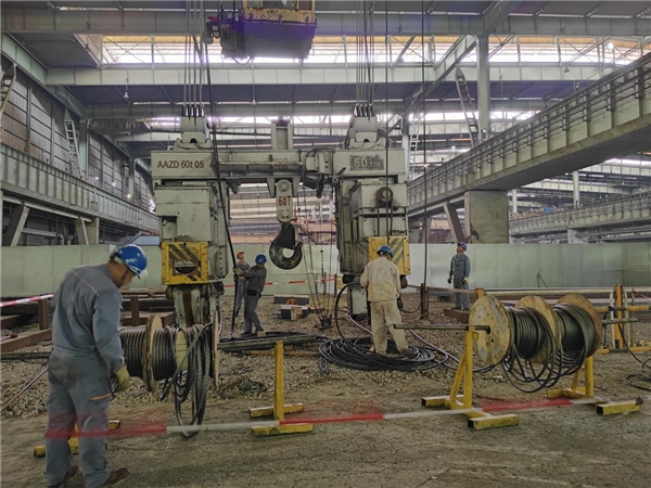 此次定修的主要項目有:板坯庫S2跨軌道緊固調(diào)整壓板更換、1號行車卷揚鋼絲繩更換、5號行車大車限位開關(guān)更換、3至7號行車夾鉗半圓滑塊拆檢給脂和行車及夾鉗緊固潤滑調(diào)整、43號行車各機構(gòu)電動機及渦流制動器常規(guī)維護(hù)、31號行車主卷制動輪聯(lián)軸器更換、7號行車拖鏈更換調(diào)整等內(nèi)容,此次定修是設(shè)備安全度夏的集中維護(hù)。由于此次定修正處入夏初期高溫天氣以及“安全生產(chǎn)月”開始,為此中冶寶鋼基層單位結(jié)合公司“安全生產(chǎn)月”活動要求,嚴(yán)把定修安全管控關(guān),首先做好安全教育和交底工作,講清項目內(nèi)容和危險源,講明白安全防護(hù)措施和管理要求,嚴(yán)格檢查上場工裝器具的合規(guī)性以及防暑降溫工作的落實到位情況,同時根據(jù)行車檢修高處作業(yè)的特性,著重跟蹤好作業(yè)過程的防墜落措施和維修作業(yè)標(biāo)準(zhǔn)的規(guī)范性,確保項目進(jìn)度質(zhì)量與人員安全受控。
