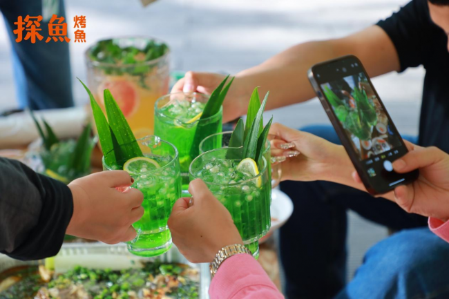 本次探魚露營品鑒會,探魚準(zhǔn)備了四月推出的新品——鮮青椒蔥蔥烤魚。新鮮的紅蔥搭配整根新鮮大蔥,讓香蔥+藤椒味型的鮮青椒蔥蔥烤魚爽麻加蔥香雙重過癮;搭配系列新品現(xiàn)場體驗(yàn)十分豐富:活力滿滿的飲品斑斕的綠,搗搗搗釋放壓力的小吃牛油果擂椒皮蛋,和口感脆爽治愈的輔菜鮮箭筍。品鑒會更設(shè)置了可以無限續(xù)加的自助暢飲區(qū),大好春光環(huán)繞之下,到場嘉賓沉浸式體驗(yàn)到美食品鑒之樂,新產(chǎn)品獲得大家一致喜愛,紛紛拍照打卡,解鎖探魚露營美食之旅。
