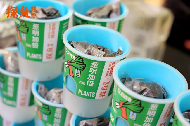在產(chǎn)品研發(fā)上,探魚也充分考慮了顧客在感官、味覺、互動等多方面的場景體驗(yàn),最新推出的“鮮青椒蔥蔥烤魚”就充分體現(xiàn)了這一點(diǎn)。鮮青椒蔥蔥烤魚在創(chuàng)新理念上,是探魚招牌口味“鮮青椒爽麻烤魚”口味的味型升級,在藤椒口味的基礎(chǔ)上增加時令性的蔥香風(fēng)味,一經(jīng)推出,就頗受大眾喜愛。據(jù)悉,新品上市7天,已經(jīng)比去年同期上新的烤魚銷量上漲105%。在產(chǎn)品呈現(xiàn)上,新品上餐時配上一整棵鮮甜大蔥,然后由服務(wù)人員現(xiàn)場進(jìn)行“剪蔥儀式”,將蔥段下入鍋內(nèi),提味增香,同時為消費(fèi)者營造一種新奇特的體驗(yàn)感。除此之外,探魚借勢本次上新,與最近大熱的植物品牌“超級植物公司”聯(lián)名推出可以種出小蔥的“蔥明種子卡”,不僅深化蔥的產(chǎn)品主題,還收獲了目標(biāo)客群“打工人”的情感共鳴。