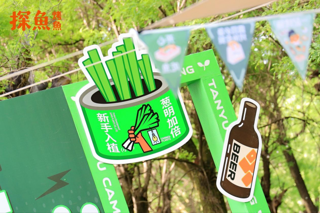 此外,露營活動現(xiàn)場還搭建“探魚品牌時光墻”,清晰呈現(xiàn)出探魚品牌成立至今的點(diǎn)點(diǎn)滴滴,將一個有趣的品牌形象變化歷程,完整地展現(xiàn)在來賓面前?;顒又?#xff0c;探魚還準(zhǔn)備了各種趣味游戲,包括搖骰子入座、大撲克游戲、蔥蔥聯(lián)名種子卡體驗(yàn),還有探魚周邊盲盒、大魚樂撲克牌等精美禮品。多種在露營場景下的趣味活動,調(diào)動著現(xiàn)場來賓們的感官和興趣,露營氛圍和新品美食,都在這一刻拉近了品牌與用戶的距離,向各位美食愛好者傳遞有趣的品牌能量。