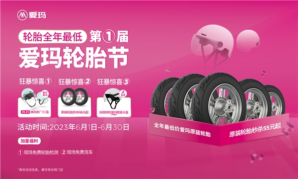 此次“愛瑪輪胎節(jié)”是電動(dòng)車行業(yè)首個(gè)輪胎節(jié),同時(shí)更是以輪胎為主題,將電動(dòng)車的售后服務(wù)提升到更高的水準(zhǔn),為用戶帶來更好的騎行安全、騎行體驗(yàn)和服務(wù)體驗(yàn)。低價(jià)換購輪胎、頭盔大換購等全品類福利的持續(xù)放送,在6月的“愛瑪輪胎節(jié)”活動(dòng)期間掀起更多電動(dòng)車用戶火熱參與的人氣高潮!