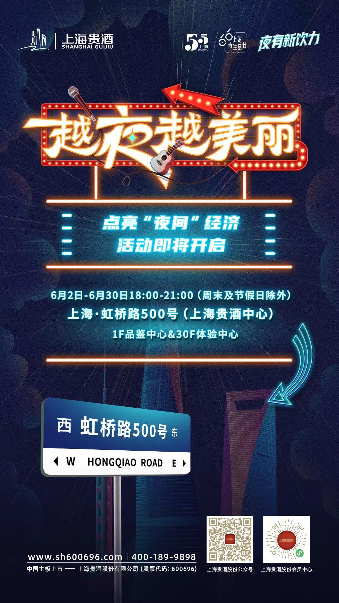 上海貴酒創(chuàng)新策劃的“虹橋路500號越夜越美麗”點亮“夜間”經(jīng)濟系列活動也將從6月2日啟幕,橫跨整個6月,邀請品牌摯友齊聚虹橋路500號——上海貴酒徐匯品鑒中心和體驗中心,點亮商圈潮流新“夜”態(tài),“飲”燃消費新活力。從沉浸品鑒、花式特調(diào)到音樂、美食、青春街舞、房車生活,上海貴酒不斷打破創(chuàng)新邊界,將上海精神和品牌元素融入活動設(shè)計中,打造出更高品質(zhì)、差異化的夜間消費場景,在夜色中點亮城市文化名片,讓魔都“越夜越美麗”!