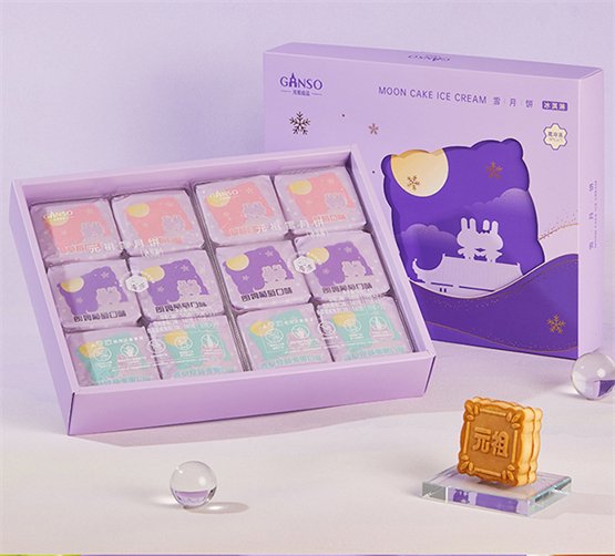 今年中秋重磅回歸的元祖雪月餅禮盒,創(chuàng)新推出了草莓、朗姆葡萄、香草夏威夷果三種風味。與傳統(tǒng)月餅不同,雪月餅由香脆可口的臺式煎餅皮包裹著香甜醇厚的冰淇淋制成,全面顛覆味蕾體驗。為了提升口感品質(zhì),元祖甄選新西蘭黃金優(yōu)質(zhì)奶源制作冰淇淋,口口驚艷深獲年輕人青睞。雪月餅禮盒更是新潮時尚,夢幻的紫色與精致鏤空設計交相融合,綻放潮流魅力,中秋自留送禮兩相宜。