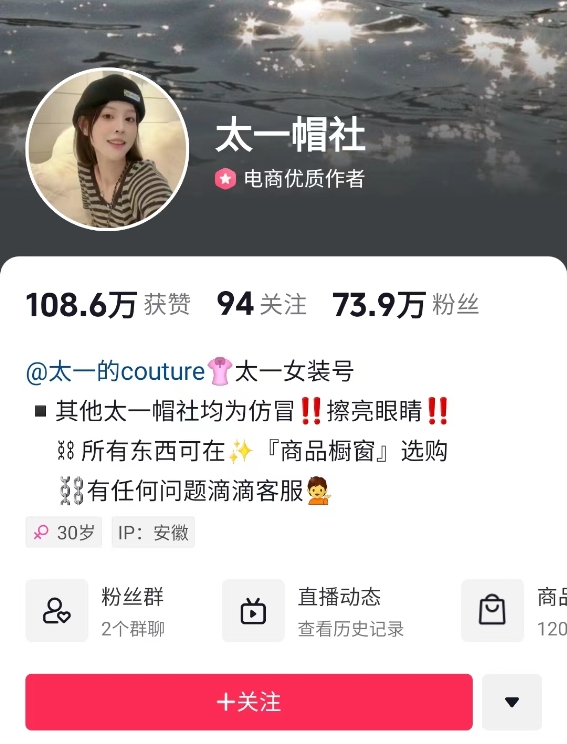 嘉琪找到一個(gè)做了8年的帽子生意的朋友,向他了解有關(guān)帽子的選品、供應(yīng)鏈之類的問題后,決定進(jìn)入這個(gè)賽道,并給賬號取名“太一帽社”。