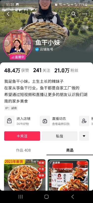 賀麗萍夫婦在抖音開了賬號,取名“辣妹子田園美食”,主打的是小魚小蝦干等地方水特產(chǎn)。前期,他們沒有過多在這個(gè)賬號傾注心血,只是發(fā)些短視頻,流量也很一般。