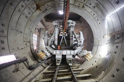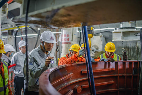 項(xiàng)目團(tuán)隊(duì)正在有條不紊的進(jìn)行管片安裝作業(yè)