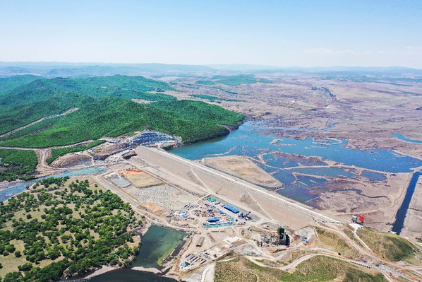 內蒙古引綽濟遼工程加緊推進。圖為引綽濟遼工程文得根水利樞紐施工現(xiàn)場。新華社記者 劉磊 攝