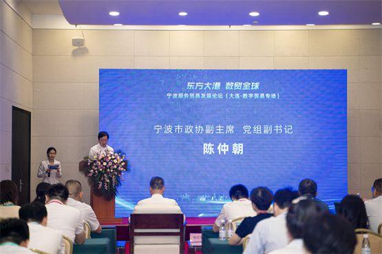 7月6日,在2023中國(guó)國(guó)際數(shù)字和軟件服務(wù)交易大會(huì)上,寧波服務(wù)貿(mào)易發(fā)展論壇(大連·數(shù)字貿(mào)易專場(chǎng))成功舉辦。寧波市政協(xié)副主席、黨組副書記陳仲朝致辭并發(fā)表重要講話。