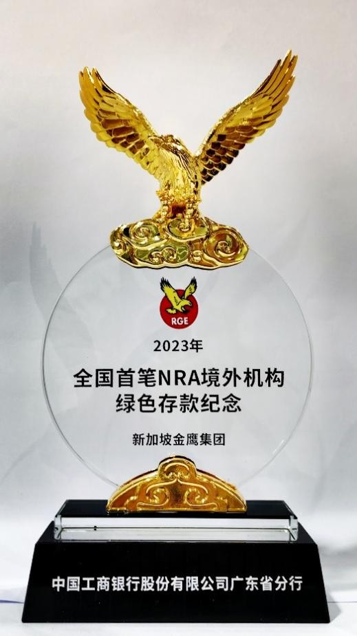 全國首筆NRA境外機(jī)構(gòu)綠色存款紀(jì)念獎(jiǎng)杯