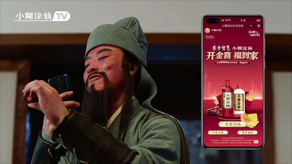 借助“開(kāi)金喜 福到家”話題水到渠成的熱度,小糊涂仙推出了#掃碼的N種姿勢(shì)#線上衍生活動(dòng),以《酒煮三國(guó)》微電影引出話題,與消費(fèi)者進(jìn)行線上互動(dòng),鞏固小糊涂仙品牌創(chuàng)新形象的同時(shí),以交互的形式再次回饋消費(fèi)者,展現(xiàn)國(guó)民品牌擔(dān)當(dāng)。