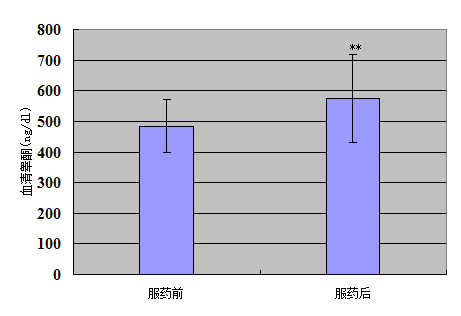一項臨床科學研究發(fā)現八子補腎膠囊能顯著提高血清睪酮水平。運動員在賽前訓練階段易出現運動性低血睪酮,表現為睪酮(T)水平下降,皮質醇(C)水平升高,睪酮/皮質醇比值下降,使合成和分解代謝間平衡失調。服用八子補腎膠囊后血清睪酮(T)顯著升高(P<0.05,圖1),C和T/C比值無顯著變化(P>0.05,P>0.05)。