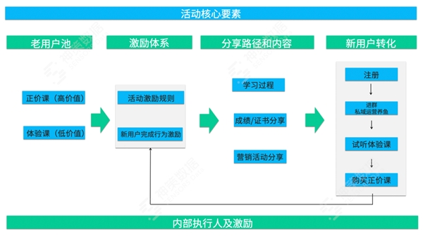 老用戶(hù)池:活動(dòng)設(shè)計(jì)時(shí),我們首先需要問(wèn)自己,活動(dòng)主要面向哪些用戶(hù),這些用戶(hù)有什么特征,他們是否愿意進(jìn)行分享,分享的觸點(diǎn)應(yīng)該埋在哪兒,他們對(duì)哪些獎(jiǎng)勵(lì)是感興趣的,他們拉來(lái)新用戶(hù)轉(zhuǎn)化的難度如何,目標(biāo)怎么設(shè)計(jì)。很明顯,面向購(gòu)買(mǎi)正價(jià)課的老用戶(hù)和注冊(cè)用戶(hù)的活動(dòng)肯定是有差異的。