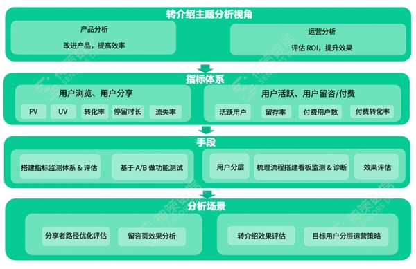 轉(zhuǎn)介紹場(chǎng)景下的重點(diǎn)有四個(gè):老用戶(hù)池、激勵(lì)體系、分享路徑和內(nèi)容、新用戶(hù)轉(zhuǎn)化。如下圖所示: