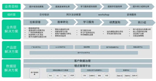 業(yè)務層:神策數(shù)據(jù)擁有豐富的教育行業(yè)交付經驗,現(xiàn)已服務百余家知名教培企業(yè),能夠充分理解教培業(yè)務,為企業(yè)提供個性化、數(shù)字化發(fā)展規(guī)劃與支持。