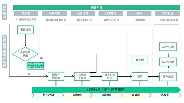 當前,教培企業(yè)大多面臨著“大量公海線索難以管理,傳統(tǒng)電銷方式不僅耗費人力還打擾用戶”的困境,因此,設計一套可落地的線索分層培育體系是十分必要的。