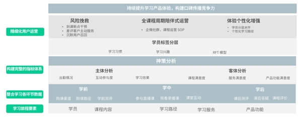 教培機構的口碑依賴于學員對課程服務的評價,因此,基于學習主體與客體的全面分析,是改進課程、驅動學習產品體驗升級的重要依據(jù)。