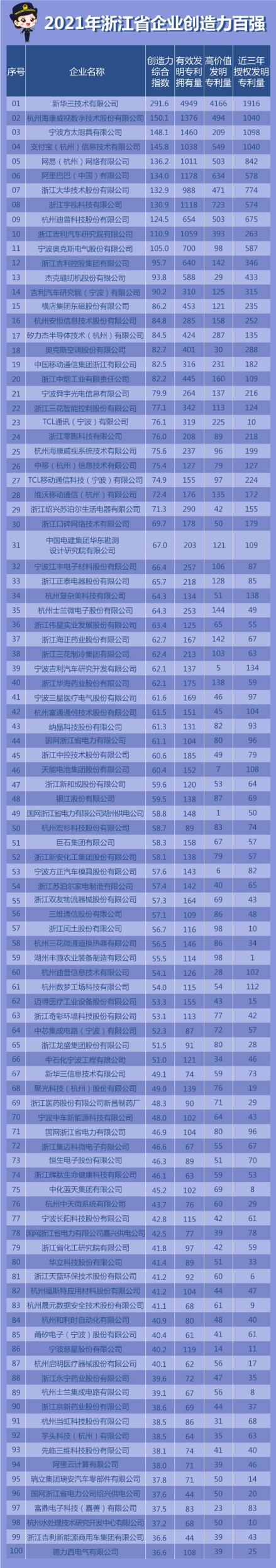 浙江創(chuàng)造力百強企業(yè)榜發(fā)布:新華三、??怠⒎教涣蠺OP3