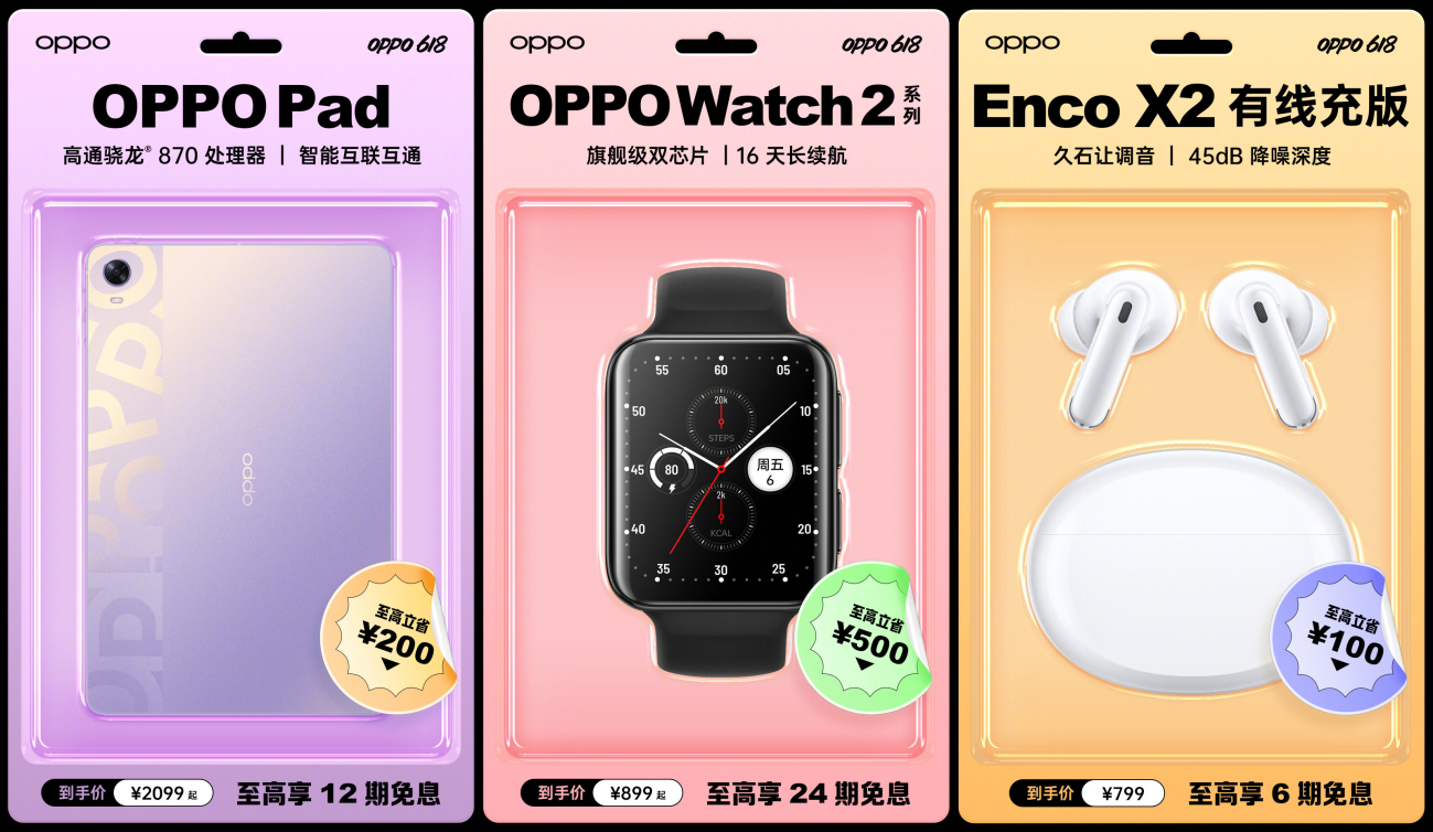 除了以上各款智能手機(jī)以外,OPPO豐富的IoT產(chǎn)品也擁有不同程度的優(yōu)惠,搭載驍龍870處理器的OPPO Pad平板電腦至高立省200,到手價(jià)僅2099元起;OPPO Watch 2系列至高立省500,到手價(jià)899元起,還可享24期免息;真無(wú)線藍(lán)牙耳機(jī)OPPO Enco Air2 Pro至高立省50元,僅需249即可入手。