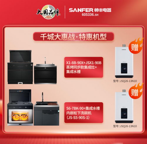 除了單一產品以外,帥豐還為消費者提供健康集成廚房一站式解決方案?;顒悠陂g,帥豐推出X1-8B-90X蒸烤同步集成灶+JSX1-90B集成水槽以及S6-7BK-90一腔雙烤集成灶+JS-S5-90S-1集成水槽內嵌松下洗碗機的套系化組合,充分滿足消費者對品質生活、智慧家居、健康家電的多元化需求。