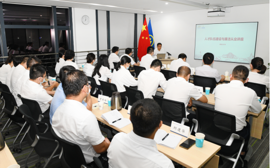 圖為公司紀(jì)委書記牛春忠在為優(yōu)訓(xùn)營(yíng)學(xué)員及近三年新入職員工開展廉潔文化講座。