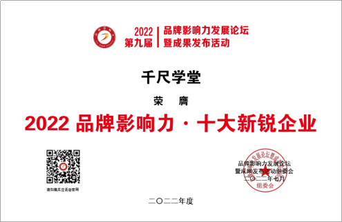 2022第九屆品牌影響力發(fā)展論壇召開 千尺學(xué)堂榮膺兩項品牌影響力大獎