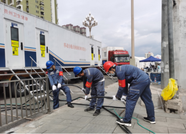 貴州電網(wǎng)于9月3日接到任務(wù)之時,用30分鐘組建青年突擊隊,10小時完成6臺綜合配電箱及360米低壓電纜接入,為11臺移動方艙式核酸檢測實驗室用電提供“雙保險”;戰(zhàn)役打響后,多支青年突擊隊對將軍山醫(yī)院等32個疫情防控醫(yī)療機構(gòu)及筑城廣場、金陽奧林匹克體育中心、花溪大學(xué)城等48個核酸樣本集中檢測方艙實現(xiàn)拉線送電和全日現(xiàn)場值守。