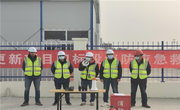 活動中,施工單位工程經(jīng)理對于消防演練的目的與滅火知識對突發(fā)事件的必要性進行了宣貫。