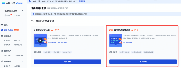 針對(duì)這些季節(jié)性經(jīng)營難題,巨量云圖極速版特別推出“春季上新場景作戰(zhàn)室”(以下簡稱“作戰(zhàn)室”)。