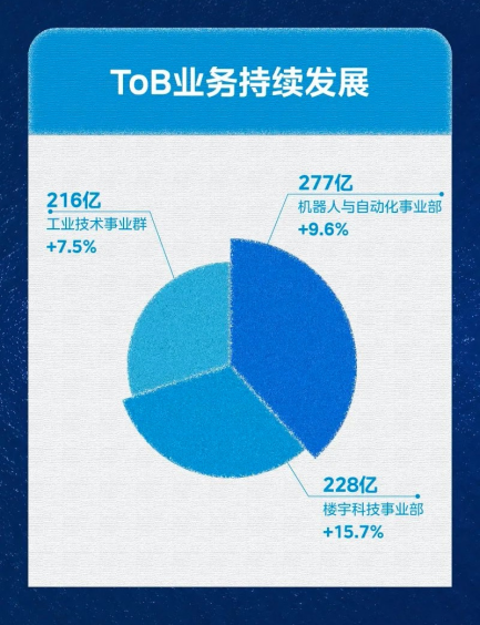 其中,智能家居事業(yè)群要實現(xiàn)高質(zhì)量增長,確保穩(wěn)定、持續(xù)的盈利能力和現(xiàn)金流;要通過創(chuàng)新變革,突破性解決非優(yōu)勢品類、新興品類、高端品牌等方面發(fā)展中的問題和挑戰(zhàn)。同時堅定發(fā)展第二引擎,著力發(fā)展機器人與自動化、樓宇科技和新能源等核心ToB業(yè)務(wù);聚焦研發(fā)投入強度和體系建設(shè),對標(biāo)世界級標(biāo)桿企業(yè)進(jìn)行提升,同時積極布局海外業(yè)務(wù),實現(xiàn)全球突破。