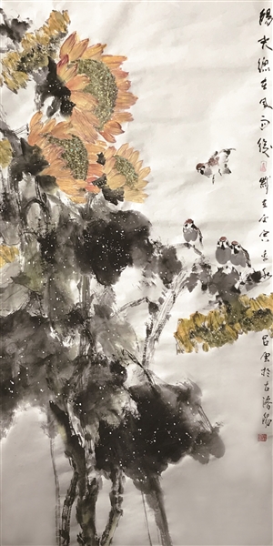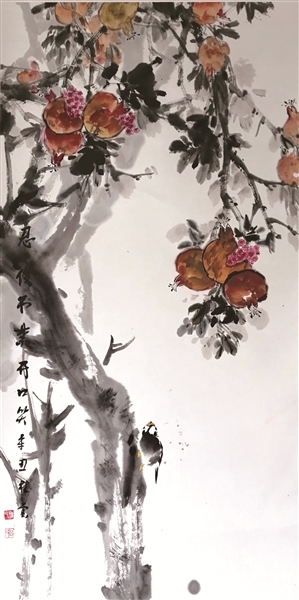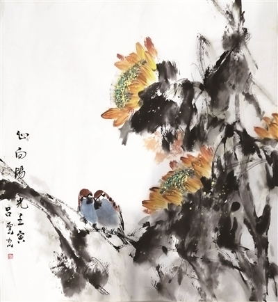 呂桂云十分懂得營造單純畫面的現(xiàn)代形式美感。其花鳥畫中的形式因素,無論是鳥、花卉或他物,皆以有利于營造整體的形式關(guān)系為度,絕不妄添多余之物。呂桂云涉筆不取陳格,不落俗格,其獨標異格,既有新穎的現(xiàn)代氣息,又有濃郁的古雅意趣。